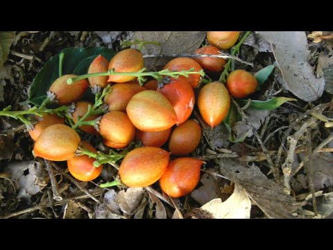 Picking and Eating Peanut Butter Fruit - Is A Peanut A Fruit - Visit my website at http://www.junglejoel.com - the peanut butter fruit tree produces small red-orange fruits with a thick pulp, that have a taste, smell, and texture ...